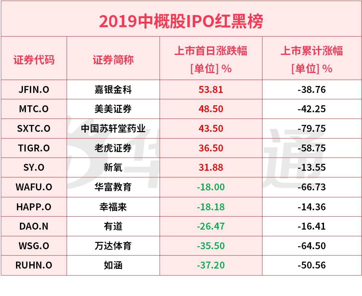 2019年中概股IPO红黑榜