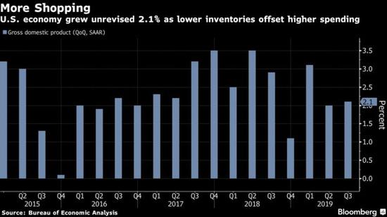 机构评论称,美国第三季度实际GDP年化季率终值:美国第三季度经济增速有所提高,并且有迹象表明,在强劲的劳动力市场的支撑下,年末经济或多或少保持了适度的增长速度,夏季时金融市场对经济衰退的担忧已经消退。