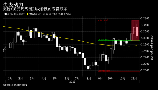英镑兑美元将迎来两年来最糟糕的一周,美元有可能成为英镑格局的改变者。英镑兑美元周线图可能形成看跌技术形态 —— 看跌的吞没线 —— 表明可能会进一步下跌。自2018年4月以来三次出现这种形态,英镑随后下跌4%至9.5%。短期内,支撑位应在1.2898-1.2920美元,是55日均线、9月以来上涨行情38.2%斐波纳契回撤位所在。上行方面,关注1.3133-34的潜在双顶。