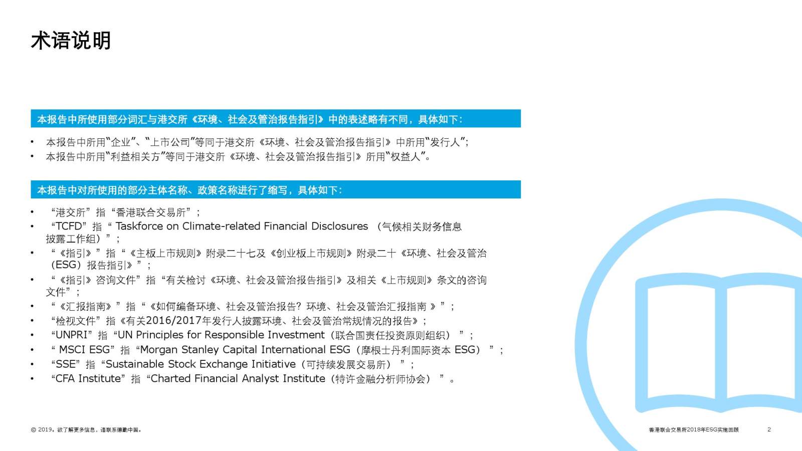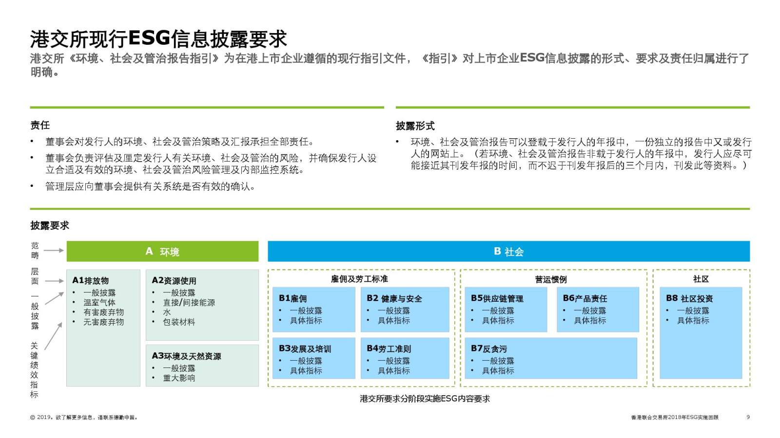 自香港联合交易所(“港交所”)2015年分阶段将《环境社会及管治报告指引》(“ESG指引”)提升至“不遵守就解释”,德勤连续三年对在港交所上市公司ESG信息披露进行回顾分析。继德勤上一年度回顾之后,港交所随后又在2018年11月发布《环境、社会及管治汇报指南》,明确规范在港上市企业编写环境、社会及管治报告的流程及注意事项,并于今年5月,发布有关检讨《环境、社会及管治报告指引》及相关《上市规则》条文的咨询文件。
