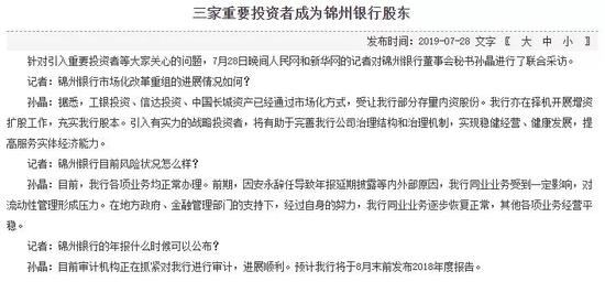 同天,锦州银行官网发文,锦州银行董事会秘书孙晶表示,目前该行各项业务均正常办理。前期因安永辞任导致年报延期披露等内外部原因,银行同业业务受到一定影响,对流动性管理形成压力。而在地方政府、金融管理部门的支持下,经过自身的努力,该行同业业务逐步恢复正常,其他各项业务经营平稳。