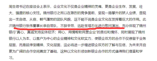 根据报道,2017年9月,张伟还曾带着锦州银行内部歌舞团赴宝塔石化演出。据宝塔石化当时对外宣传稿,由张伟带队的锦州银行员工不辞辛劳赴宝塔石化慰问演出,宝塔石化集团董事局主席孙珩超出席活动,并向锦州银行赠送了锦旗和书法长卷。2018年11月16日,孙珩超因涉嫌票据诈骗罪被银川市公安局逮捕。