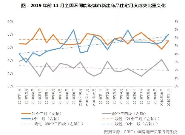 一线城市成交量有望稳步提升。一方面,一线市场在2019年表现出的极强韧性为来年楼市注入强大信心和向好预期,市场上观望情绪有所消散。另一方面,区域性利好频传,如上海自贸区临港新片区建设提速、深圳中国特色社会主义先行示范区构想获批,一定程度上将助力楼市发展。