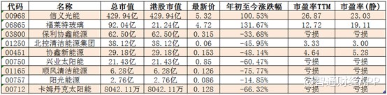 不过光伏指数其实给人较大的误导,据智通财经统计,具体到个股,从年初至12月20日,光伏板块只有信义光能(00966)和福莱特玻璃(06865)实现了上涨,涨幅高达100.53%和131.67%,其他个股从14%到75%跌幅不一。但是因为信义光能和福莱特玻璃市值较大,占到板块总市值70%以上,所以带动了指数上涨。