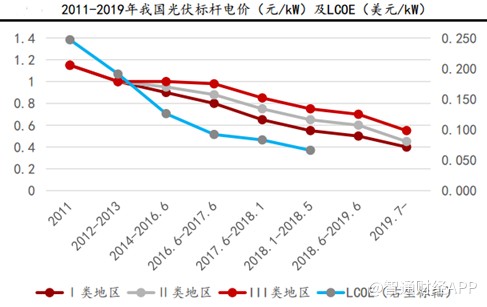 据了解,2011年至2019年我国光伏平均度电成本(LCOE)从0.247美元/kW 下降至0.066美元/kW,降幅达到73.28%,主要得益于原材料成本及技术水平提升的多方面作用。而同期标杆电价下降幅度最大的I类资源区从1.15元/kW下降至0.55元/kW,降幅为52.17%,成本端更快的下降速度保证了企业盈利水平,缩短行业降本增效的阵痛期。