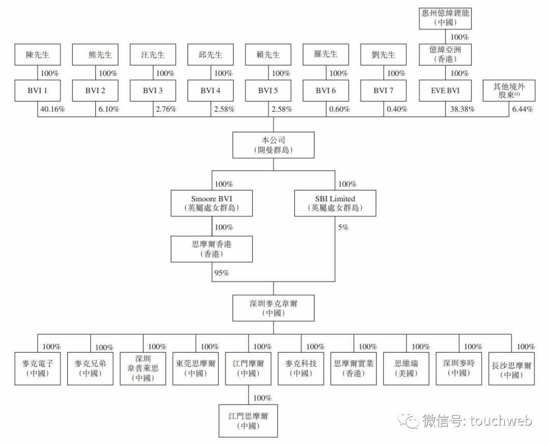 IPO前,陈志平持有40.16%股权,为最大股东;熊少明持股为6.1%,为第二大股东;亿纬锂能SmooreInternationalHoldingsLimited(“SIHL”)通过间接持有38.38%股权,为第二大股东。