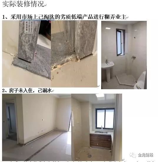 但在2015年,宣传口号是“要对得起客户,对得起脚下这块土地”。在宣传中,这一楼盘曾被视作高品质的豪宅,然而2017年时,有业主在收房之后发现,从绿化到墙面,都没有达到预期的标准。业主们询问后得到的反馈是,该小区是按照集团内部最低规格的标准来做的。