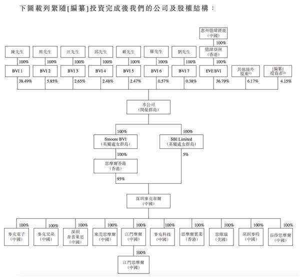 招股书提到,此次上市主体思摩尔于今年7月在开曼群岛注册成立,与此同时其全资拥有的投资控股公司思摩尔BVI也在英属处女群岛成立。思摩尔(香港)有限公司则是一家于8月在香港成立的投资控股公司,由思摩尔BVI全资拥有。在境外股权重组后,思摩尔9月与包含多只股权投资基金的SBI Limited签订协议,由后者向麦克韦尔注资。