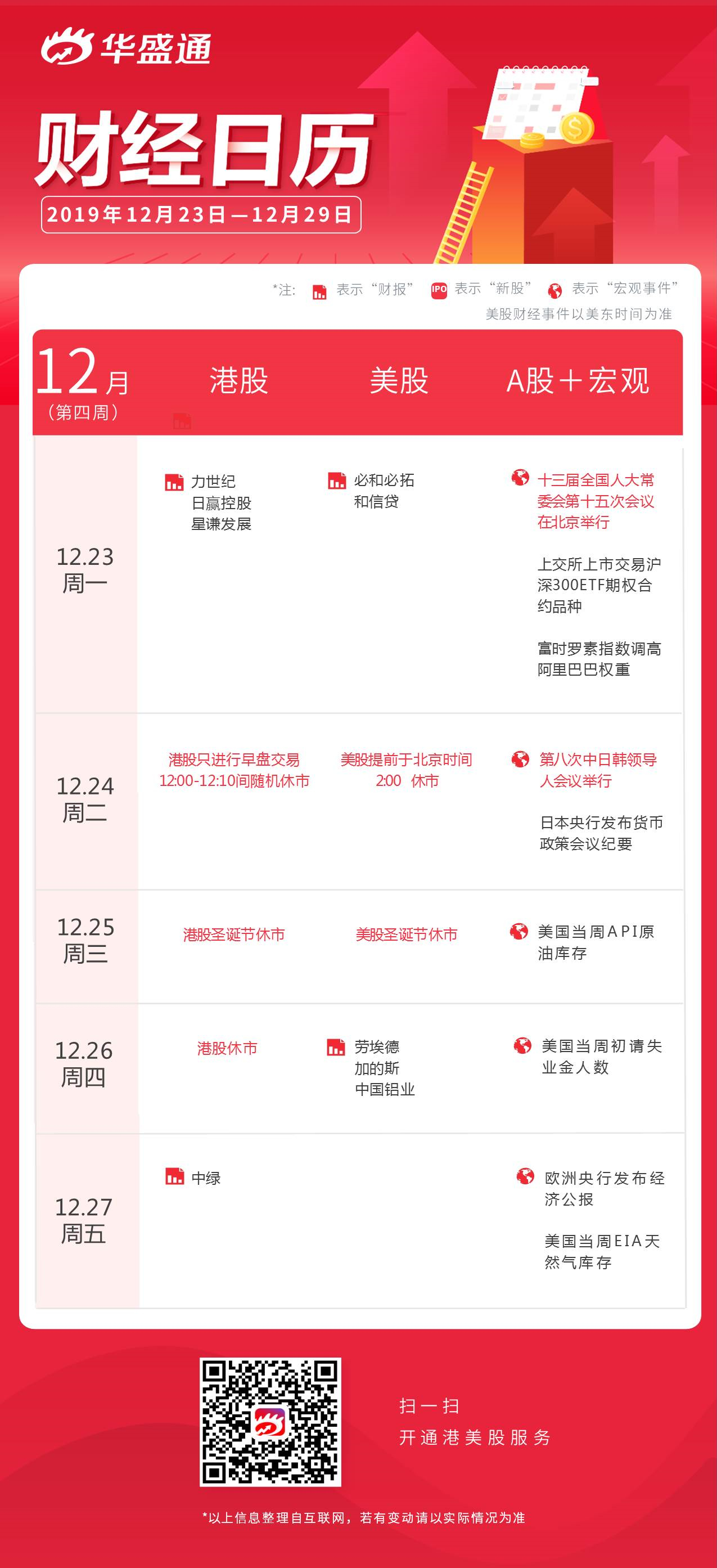 1. 本周迎来圣诞节,港美股休市时间不一;