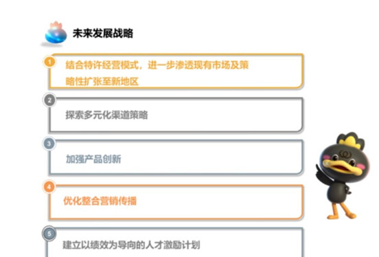 (1)结合特许经营模式,进一步渗透现有市场以及新的地区。