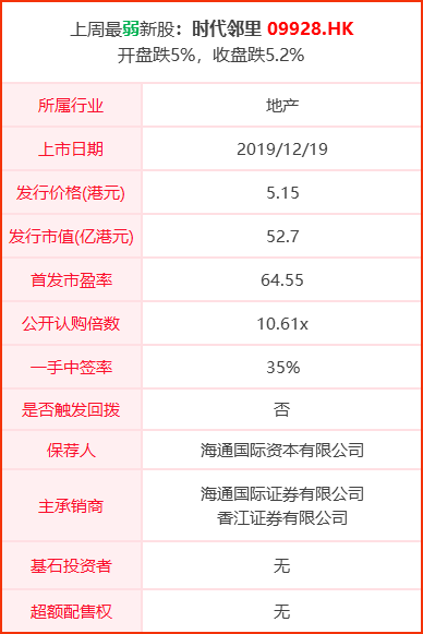 上周最关注的非保利物业莫属,一手100%的中签率,超10万人中签,配上超20%的涨幅,一手中签收益最高达2050港币,即有10万多人收到了新股年底大红包。