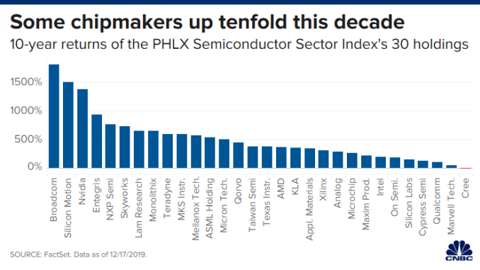 Institutional Investor 评出的芯片行业顶级分析师 Stacy Rasgon,在2009年7月首次发表对芯片行业的报告时,大概没有想到芯片行业在接下来的十年会发生天翻地覆的变化,成为近十年来市场表现最好的行业。展望2020年,摩根士丹利和摩根大通对芯片行业却分别给出了两个极端的预测。