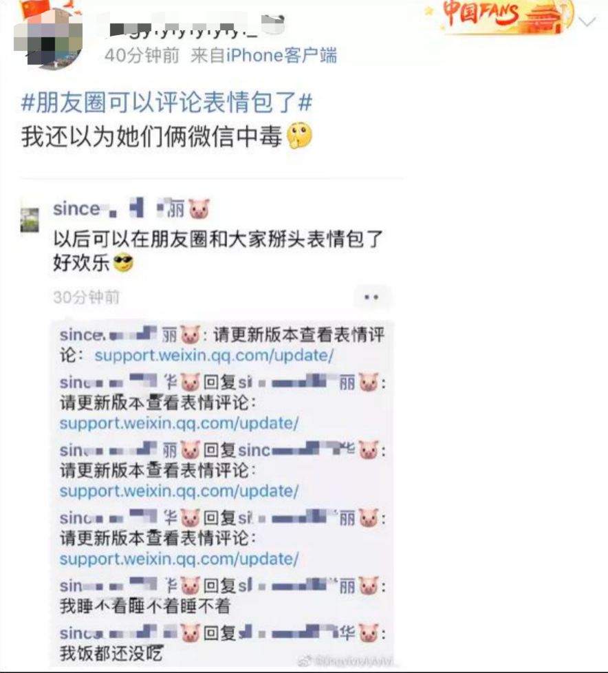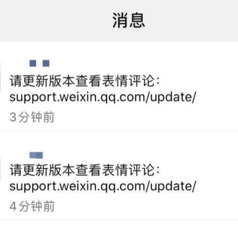 而对于还没有更新新版本的苹果用户来说,朋友圈评论表情会提示“请更新版本查看表情评论”。一片刷屏后,不知情的用户还以为今天网友集体网络崩溃或是木马中毒……