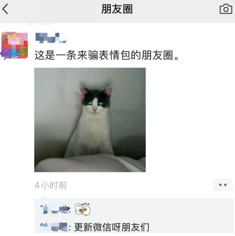 不过,朋友圈“信息流”页面中的表情包效果,并不是特别美观:动态表情在朋友圈所占比例非常小,且不可动,只能长按放大预览查看完整效果。