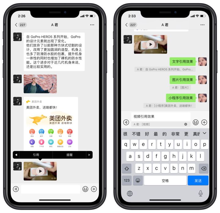 微信7.0.9 for iOS版引用效果(图片来源:AppSo)
