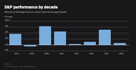 新浪美股讯 北京时间12月24日消息,距离2010年代结束已不到两周时间。标准普尔500指数成为过去十年的赢家。