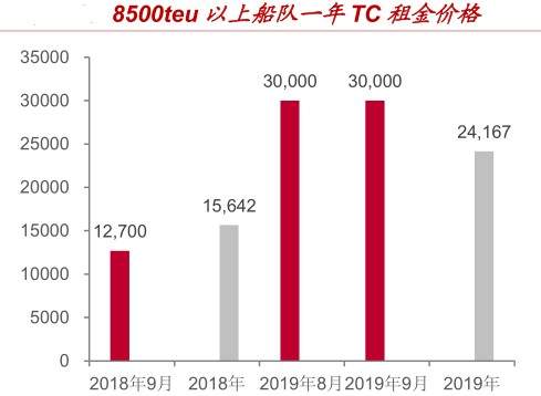 在安装脱硫塔影响下,租船价格已经在上涨了。智通财经APP了解到,现有船队10%正在或等待安装脱硫塔,其中大型集运船队安装脱硫塔的份额占比最高,受短期船队供给不足的影响,今年8月、9月租船价格为30000美元,同比2019年9月上涨136%,2019年底预计全年租船价格为24167美元,同比2018年上涨54.5%,而集装箱运价指数也在持续上行。