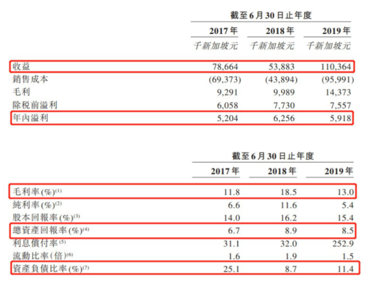 截至2017年6月30日止年度光荣建设收益由约7866.4万新加坡元减少至截至2018年6月30日止年度约5388.3万新加坡元,主要受其加建及改动项目的收益减少影响,由于截至2018年6月30日止年度的三个进行中项目处于完成初期阶段,该年内进行的加建及改动工程相对较少。收益增加至截至2019年6月30日止年度约1.10亿新加坡元,主要受于公营界别加建及改动项目的收益增加影响。