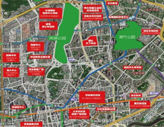 蔡屋围所在是罗湖区的核心地段,总建筑面积近270万平方米,紧挨着地王大厦、万象城、中国人民银行与其他商业银行深圳总部,可以说是深圳目前最重要的旧改项目之一。