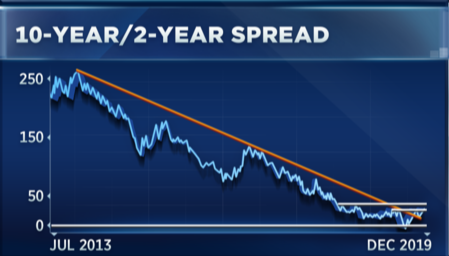 上周五,他在CNBC上表示,银行股有望继续上涨,如果观察2年期和10年期美国国债收益率之间的利差,投资者会发现在过去几个月里,美国国债收益率有所扩大。这两者的利差超过了28个基点,扭转了过去四五年以来的下跌趋势。