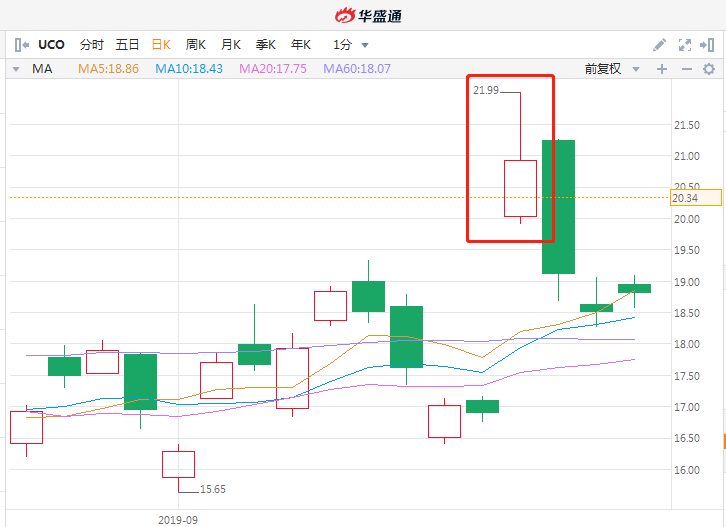二倍做多原油ETF (UCO)9月16日表现 行情来源:华盛证券
