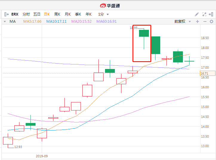 三倍做多能源ETF-Direxion(ERX)9月16日表现 行情来源:华盛证券