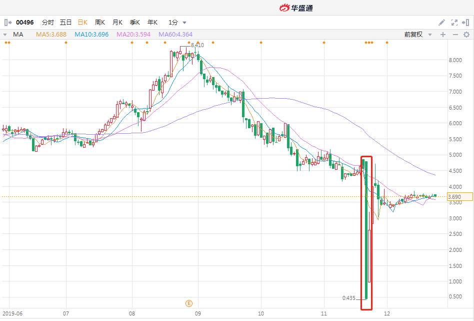 杀人鲸狙击的另一只股票比较有意思,即在做空当天(11月21日)暴跌90.07%,又在次日(11月22日)暴涨478.02%的卡森国际。这只股票不知道杀人鲸是赚的盆满钵满,还是没见好就收致收益大幅回撤。