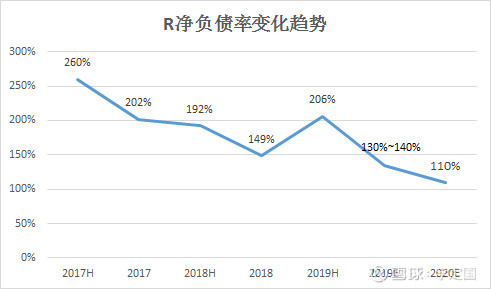 然而外界的偏见是巨大的,市场主流仍旧认为R的激进与高杠杆随时将会面临现金流断裂,会破产会倒闭。事实上,从2017年以来R一直在稳步的降杠杆,净负债率从17年中期260%稳步下降到今年底大概130%~140%的水平,2019年中报的净负债率的上升只是阶段性的,2020年有望降低到100%出头。