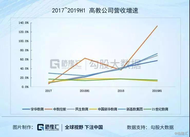 职业教育方面,2019年进入了政策密集期,更多政策的细节开始落地,政府鼓励民营资本兴办职业教育的基调已定下;K12学校方面,今年的政策可以概括为“公民同招”和“摇号录取”,旨在更大范围内实现公平教育;校外教育机构方面,学生减负、机构专项整改、教师资格证等一系列政策出台,让原本处于野蛮生长的教育机构得到有效监管;高等教育方面,则是受到政策影响最小的。从今年教育股的收并购进程就可以看出,板块完全没有受到政策影响,大多数公司业绩在内生+外延的驱动下,仍然录得了较高的增速。