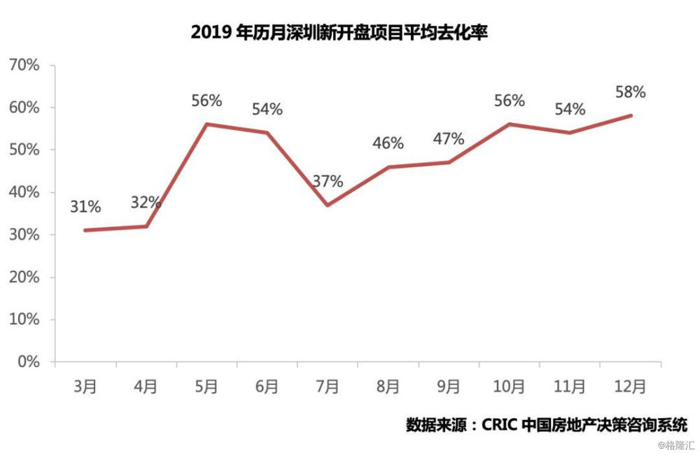 随着深圳房地产市场持续升温,新开盘项目去化率大幅提升,平均去化率由3月份的31%提升至12月份的58%,净增长27个百分点。