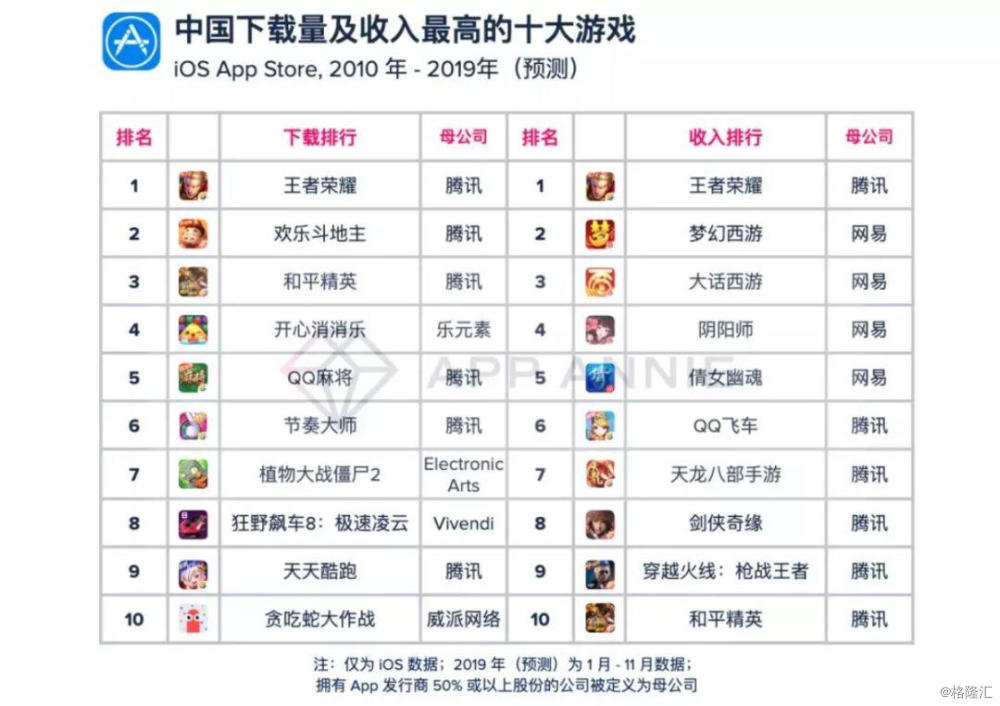 从2010年至今,对于中国互联网来说无疑是一个“野蛮生长”的时期。十年间,我们见证了从2G到4G质的飞跃,目睹了中国移动厂商从接受者到开创者的身份转变,也亲身经历了移动App的爆发式增长。这10年,又有哪些App是你心中的Top10呢?App Annie统计了中国App Store 10年来手机游戏的总下载排名和收入,来展现这崛起的10年内,都有哪些手游已经“功成名就”。