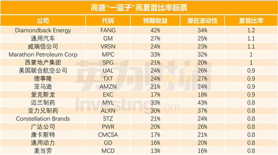 高盛“一篮子”高夏普比率股票