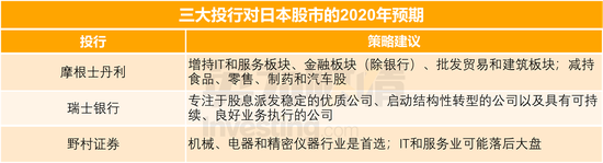 三大投行对日本股市的2020年预期