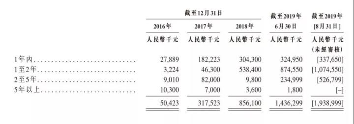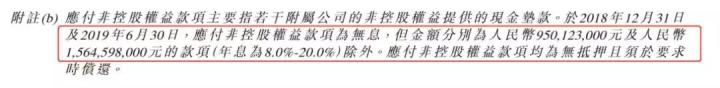 财务报表中的应付款项在2016年、2017年的数值都还为0,2018年竟出现了12.2亿元的应付非控股权益款项,2019年中期已经达到21.9亿元。招股书中对此项的定义为非控股股东为支持项目开发而向有关附属公司支付的垫款,其中金额为9.5亿元和15.6亿元的款项是需要支付利息的,年息为8.0%-20.0%,上限利率近乎于高利贷了。