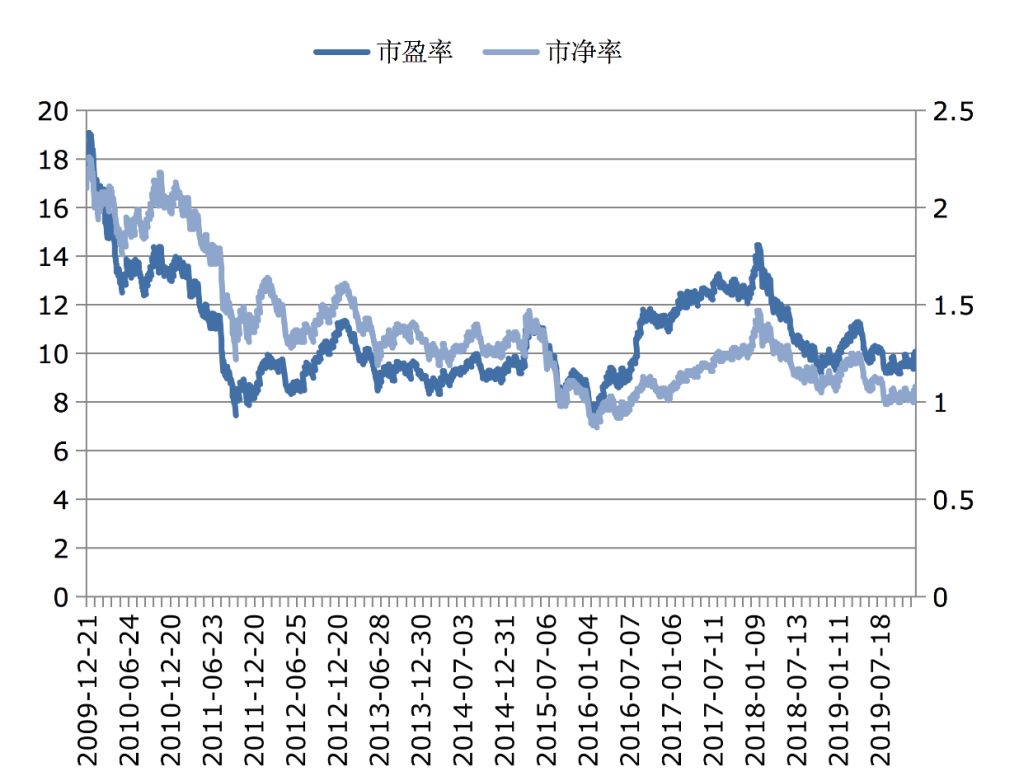 小欧统计了过去10年,恒生指数市盈率和市净率均值,分别为10.69倍和1.36倍。而截至2019/12/18,恒生指数当前市盈率PE为10.08倍,PB为1.08倍,均低于过去十年平均水平。
