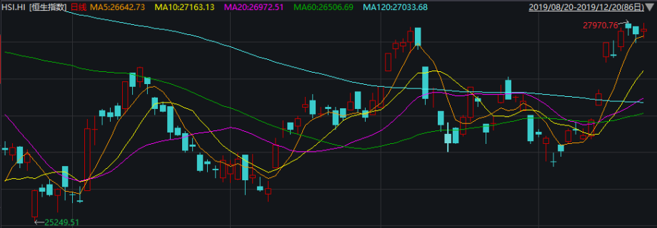 注:wind,图为恒生指数K线,统计区间2019/8/20-2019/12/20