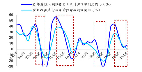 海通证券研究得出:港股盈利是呈周期性的,盈利回落周期约2年。