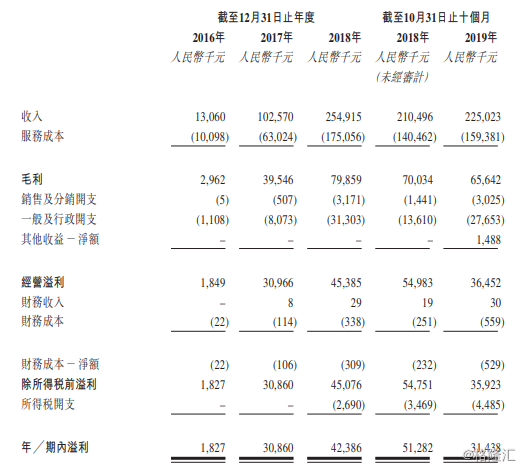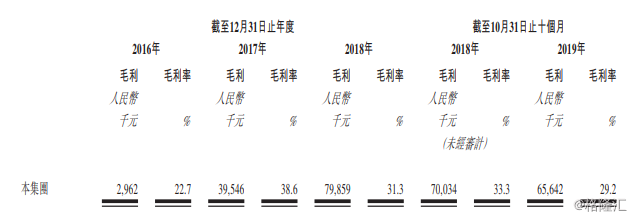 2016、2017、2018财年,辉煌明天科技的毛利率分别为22.7%、38.6%、31.3%;2019年1-10月的毛利率为29.2%,而2018年同期毛利率为33.3%。除2017年业务开始放量使得毛利率大幅提升以外,毛利率呈现显著下降。