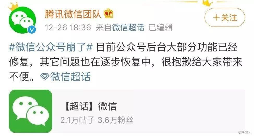 微信公众号系统出现大范围瘫痪