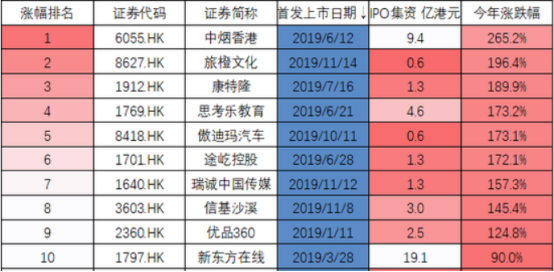 据新浪财经统计,截至12月17日,今年以来港股新股破发率高达59%。涨幅最好的是中烟香港,涨幅高达265%,而瑞诚中国传媒以157%的涨幅位列第七名。