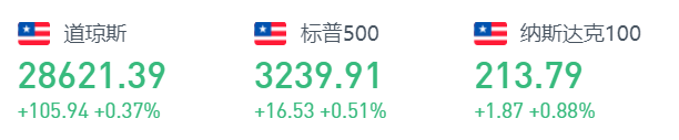 美股周四继续创新高,道琼斯工业平均指数上涨105.94点,至28621.39点,涨幅0.37%;标普500指数上涨16.53点,至3239.91点,涨幅0.51%;纳斯达克综合指数上涨69.51点,至9022.39点,涨幅0.78%。