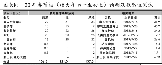 其中,光大证券认为,如果2020春节档出现多部爆款电影且票房大盘超预期,或让市场对传媒政策的担忧进一步化解,并催化传媒板块的新一轮行情,开启 2020传媒牛市。