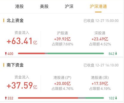 北上资金方面,今日净流入63.41亿元。沪股通净买入贵州茅台10.42亿元,净买入中国平安4.79亿元;净卖出海尔智家3.52亿元。