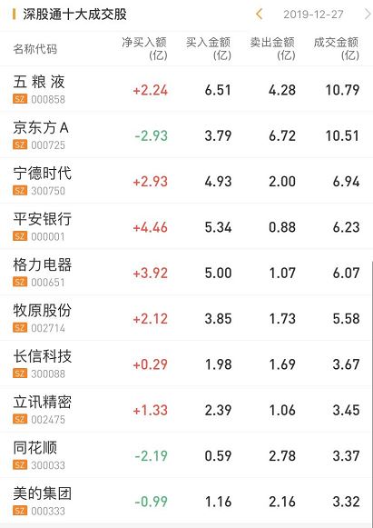 深股通净买入平安银行4.46亿元,净买入格力电器3.92亿元;净卖出京东方A2.93亿元。