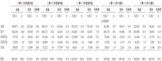 其中桌游及贺卡是公司的主力产品,于2016年-2018年以及2019年六个月,桌游及贺卡的销售额合共分别占总收益的82.0%、82.3%、81.3%以及85.0%。