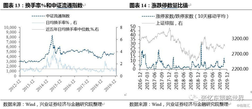 • A股日均换手率,从上周的1.33%下跌为1.08%,低于近五年以来的中位数1.17%;本周五涨停家数/跌停家数比(10日移动平均)为7.76,低于上周的13.5。