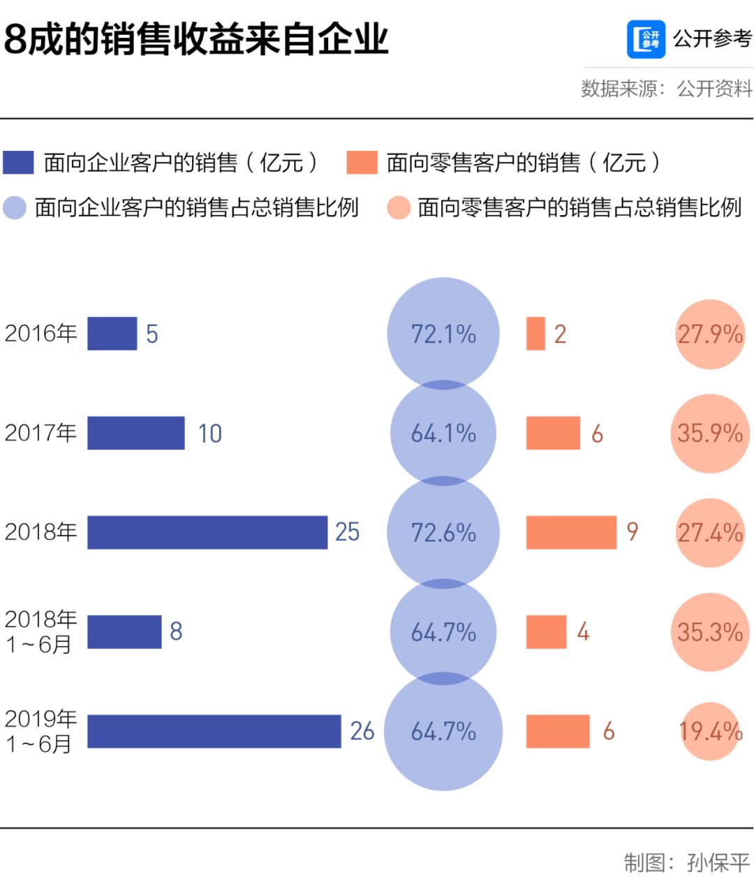 在企业客户和零售客户的占比上,企业客户一直占了绝大部分,并且这个比例还在提升。去年,麦克韦尔面向企业销售的收入占比为72.6%,今年上半年已经上升至80.6%。相比之下,企业用户的粘性要比零售端的更大。