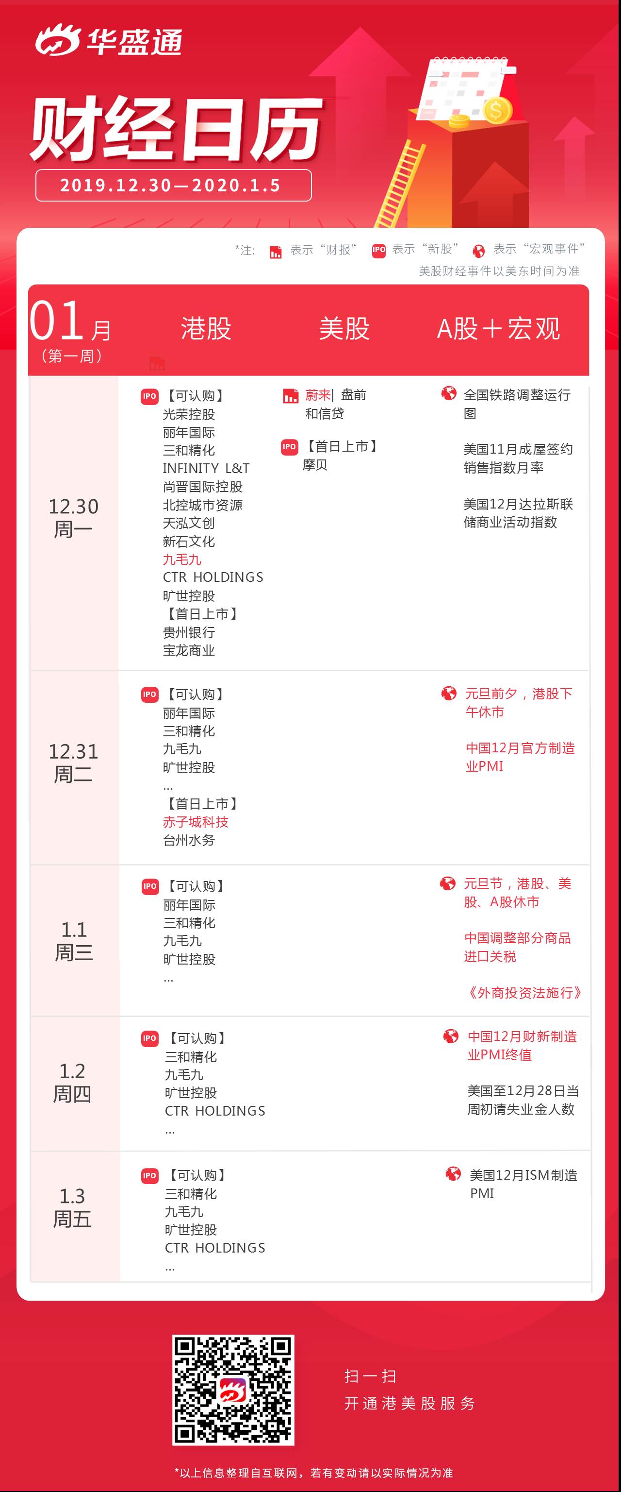 以上即为本周港美股、A股及宏观资讯一览,祝新的一周投资顺利~点击“日历”专区,了解本周更多财经大事↓