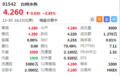 另一只新股台州水务高开后涨近1%,公告显示,台州水务公开配售超购倍数约5.47倍,不足以触发回拨。