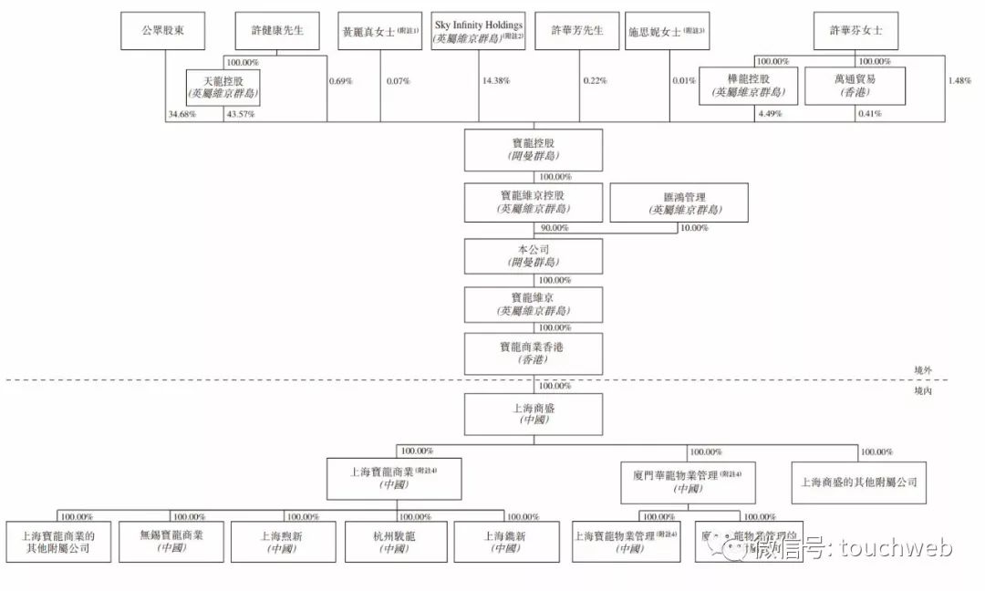 紧随资本化发行及全球发售完成后,许健康(以其个人身份及透过天龙控股)连同其配偶黄丽真、许华芳(以其个人身份及透过SkyInfinity Holdings)连同其配偶施思妮及许华芬(以其个人身份及透过桦龙控股及万通贸易)将合共拥有宝龙控股约65.32%股权。